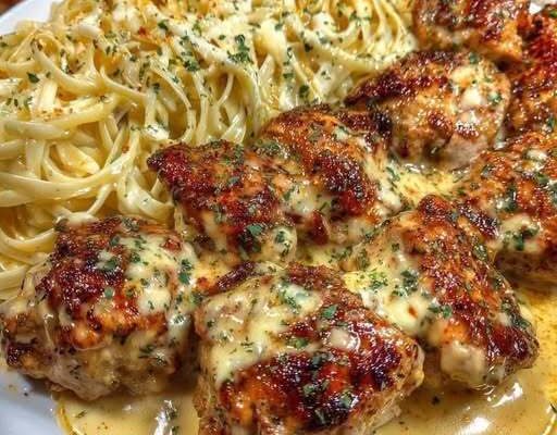 The pasta component complements the savory chicken perfectly. Fettuccine—or any preferred pasta—is cooked until al dente. A smooth, creamy sauce is made with butter, garlic, chicken broth, heavy cream, and grated Parmesan cheese. The sauce is seasoned to taste and can be adjusted with a splash of pasta water for the perfect consistency.