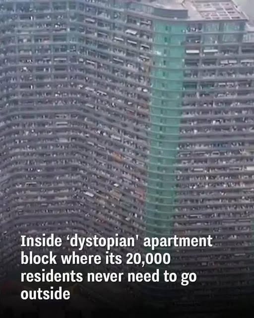 Currently home to around 20,000 people, the complex contains nearly everything residents need: gyms, shops, salons, food courts, convenience stores, and even small offices. Its layout reflects China’s trend toward hyper-dense developments that blend housing with built-in amenities to minimize commuting.